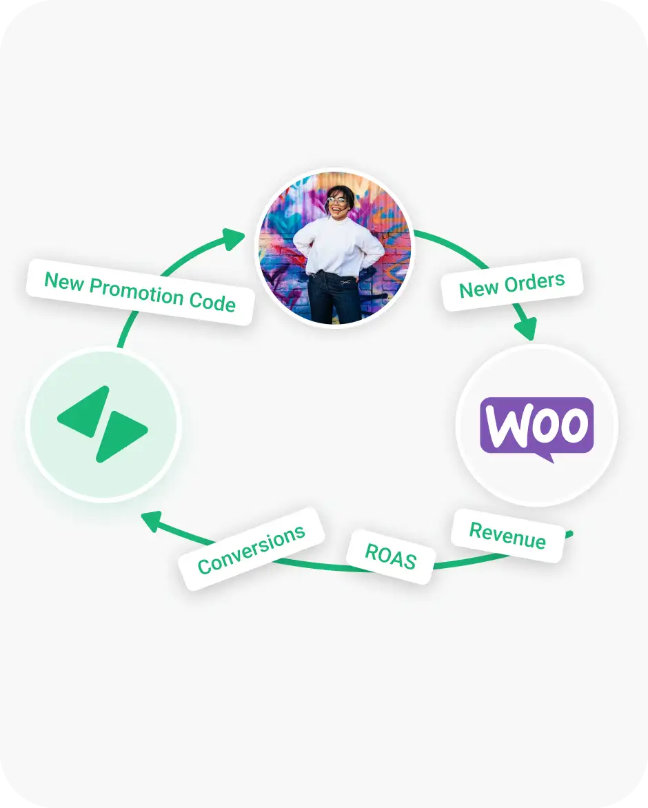 Skaliere dein Influencer Marketing: Teile Rabattcodes mit Creatorn und tracke die Performance - alles automatisch mit WooCommerce synchronisiert.